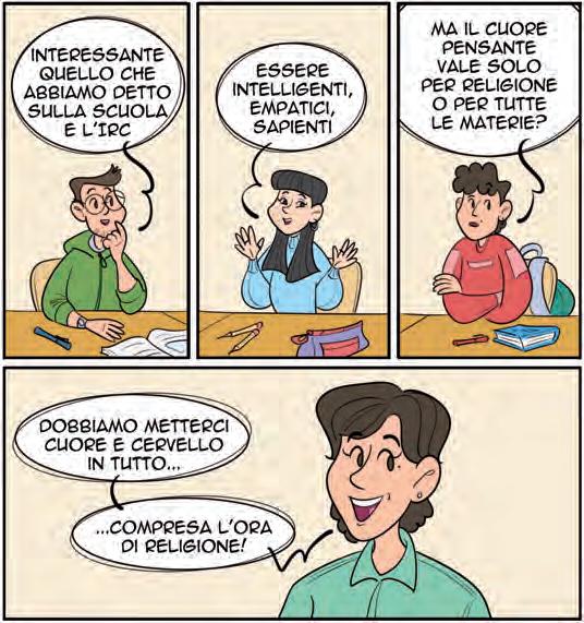 Se per caso ti stavi chiedendo cosa vuol dire fare Irc (Insegnamento della religione cattolica) a scuola, crediamo, almeno in parte, di averti già risposto. Senza nulla togliere a tutte le altre materie, che sono fondamentali per il tuo cammino di conoscenza e di crescita, l’ora di religione, nel suo piccolo, oltre a farti conoscere la cultura religiosa, vuole insegnarti due cose in particolare: prima di tutto, ad affinare la tua intelligenza (da intus-legere “leggere dentro”) per capire meglio te stessa/o, gli altri, il mondo e l’ambiente che ci circonda; in secondo luogo, a “mettere il cuore” nelle cose che vivi con quel brivido di passione che possono trasmetterti i colori della fede. Non solo la fede cattolica (che è comunque parte integrante del patrimonio storico, artistico e letterario italiano), ma anche quella di tanti popoli che ci testimoniano che c’è qualcuno o qualcosa sopra di noi e che nel rapporto con questo “oltre” possiamo amplificare il senso di ciò che viviamo o cerchiamo. Ovviamente, siamo contenti che tu abbia “scelto” di avvalerti dell’Irc perché “scegliere” nella vita è un verbo importante, che esprime maturità e interesse, ed è essenziale per crescere come persone e cittadini responsabili. Noi – per scelta – non ti chiederemo se sei credente, atea/o, incerta/o perché a noi interessa sapere se sei curiosa/o, se hai il coraggio di farti domande anche scomode, se hai tante realtà che ti stanno a cuore. Se niente ti sarà indifferente, se imparerai ad utilizzare bene il tuo cervello, così come l’intelligenza del cuore, vedrai che il tuo sguardo si farà penetrante e nuovi orizzonti si apriranno dentro e attorno a te, senza paure e preclusioni. E questo è già un successo, per te e per noi. Buon lavoro!