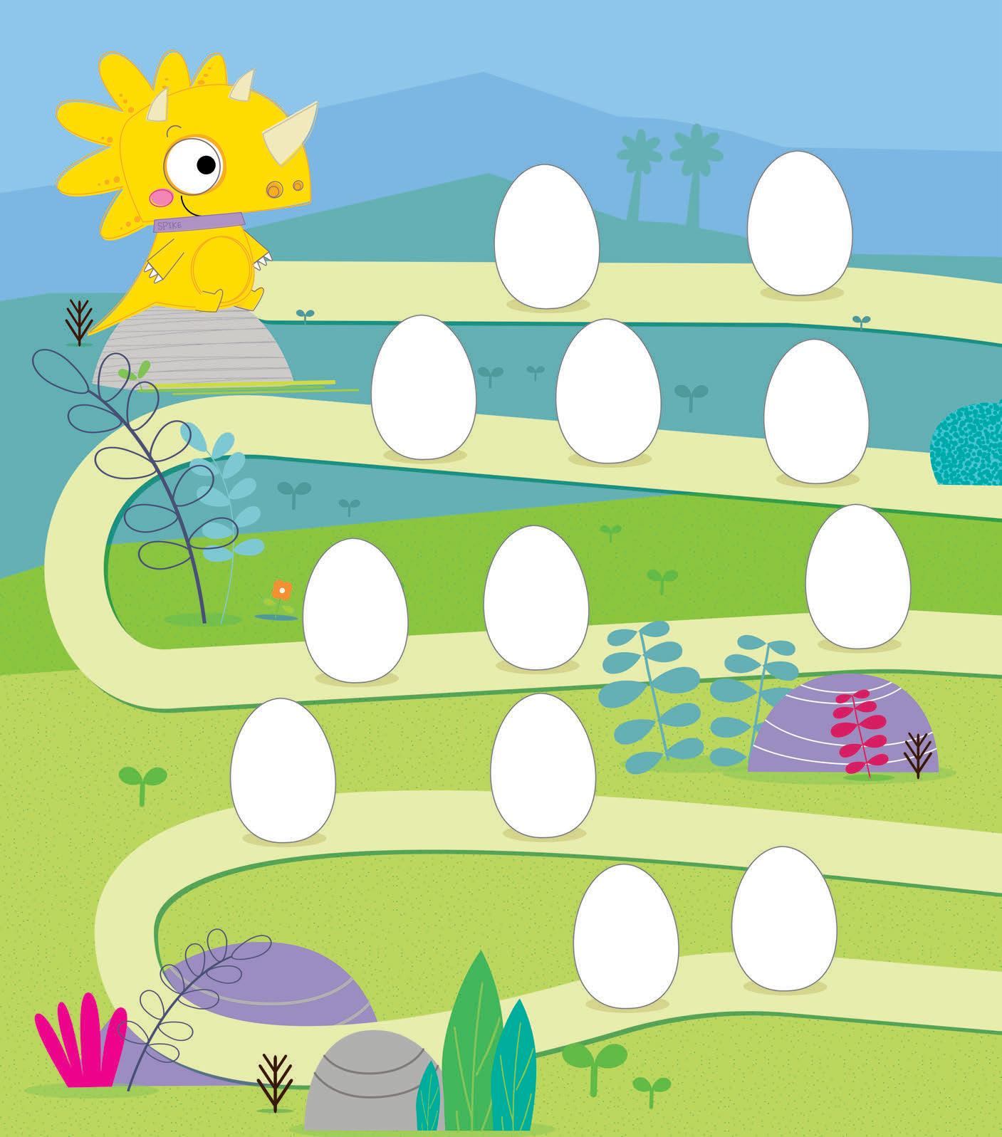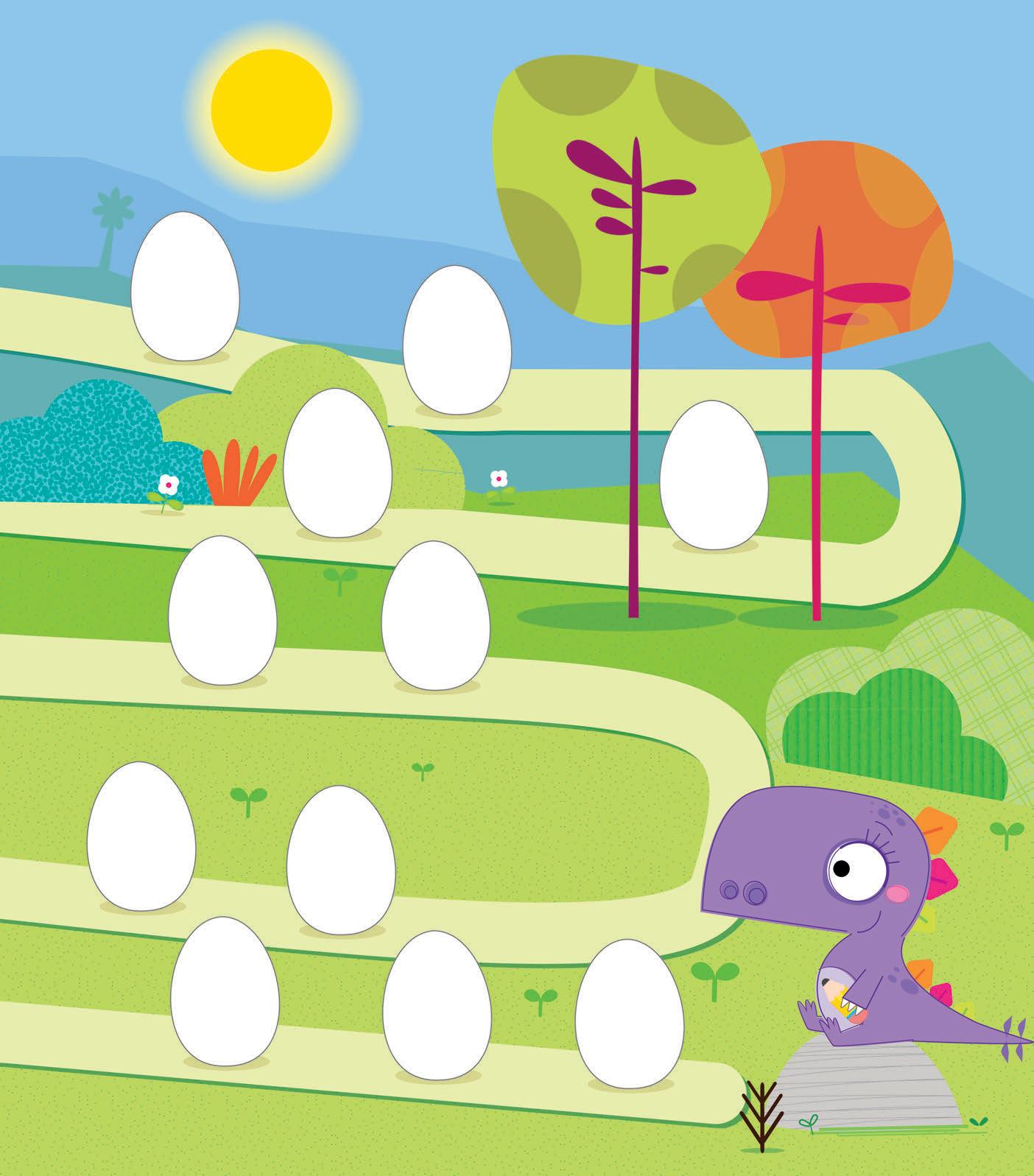 OGNI VOLTA CHE FINISCI UNA PAGINA, COLORA UN UOVO DI DINOSAURO COME LO VEDI NELLA PAGINA DI RIFERIMENTO.