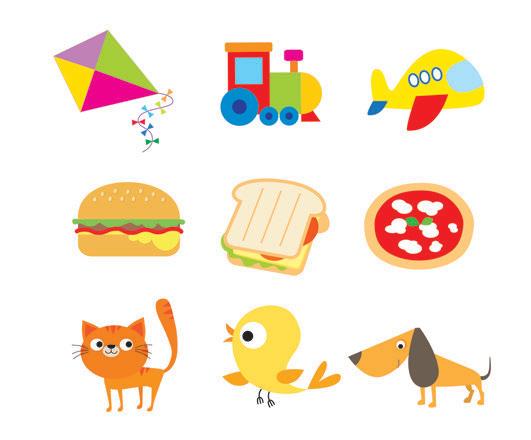 COLOUR: NUMBER: TOY: FOOD: PET: