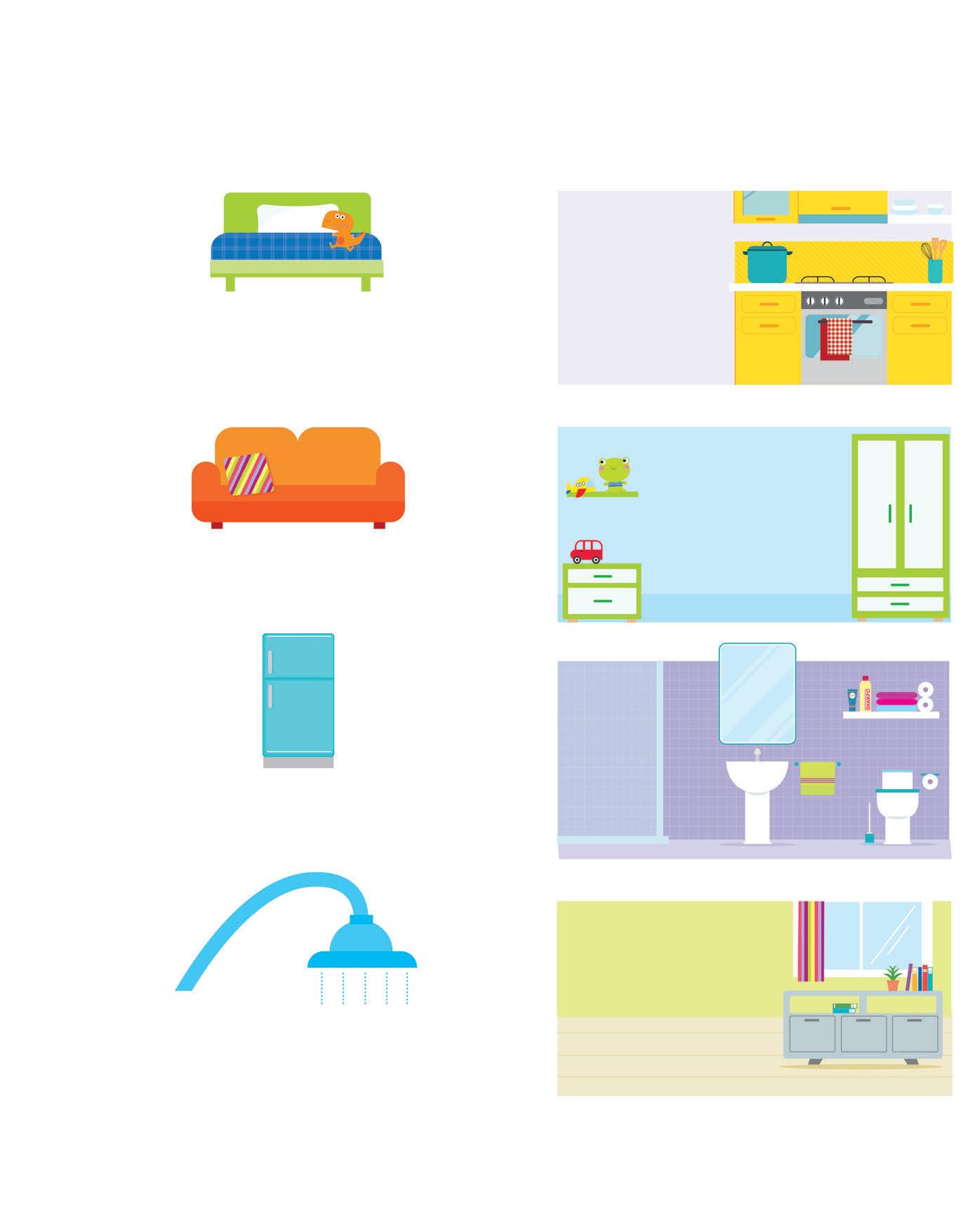 2 CERCA GLI ANIMALETTI E SCRIVI IN QUALE STANZA SONO. POI ASCOLTA E CONTROLLA.