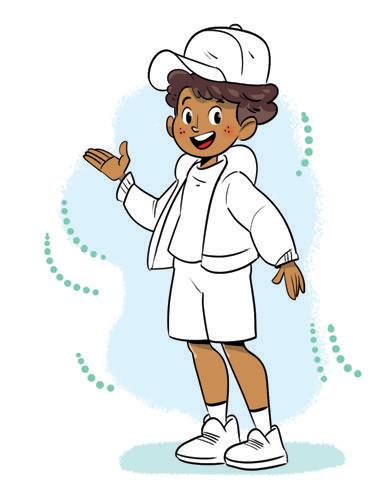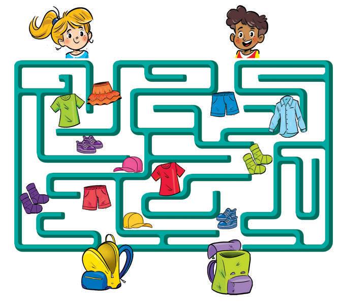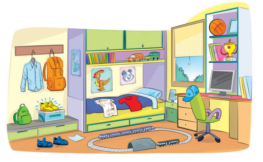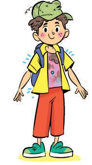 8 Scrivi i numeri degli elementi e colora come indicato. 1 a yellow jacket 2 a green cap 3 a purple shirt 4 pink socks