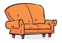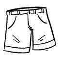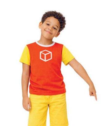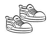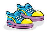 blue trainers 6 a black T-shirt 7 a red skirt 8 orange shorts