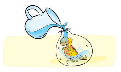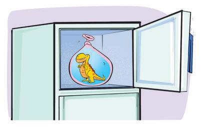 balloons freezer small toy dinosaurs scissors water spray bottle (warm water)