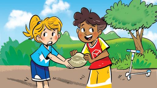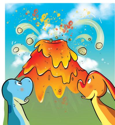 2 Mia can’t play music. 3 The volcano is happy at the end.