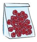 5 Scrivi i numeri mancanti sotto ogni sacchetto di lamponi. Poi ascolta e controlla.