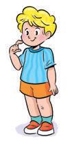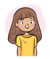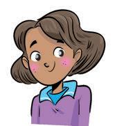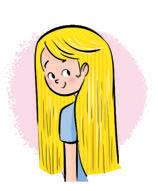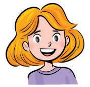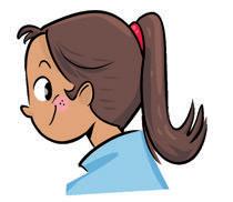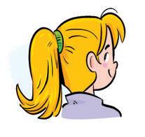 2 She’s got red hair. She’s got a ponytail. She’s got glasses but they aren’t purple. She’s short and slim. Her name’s