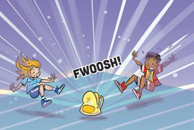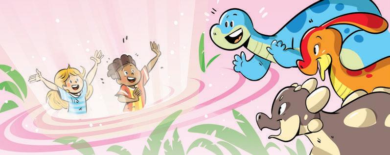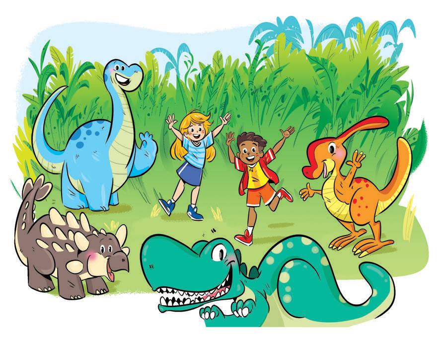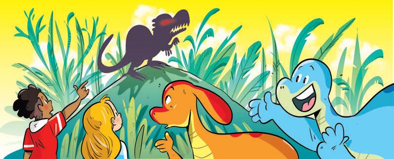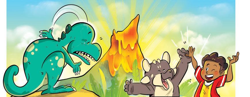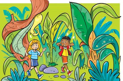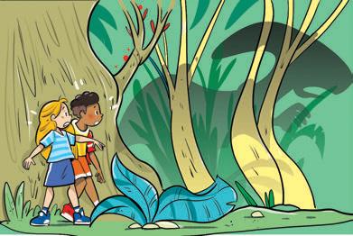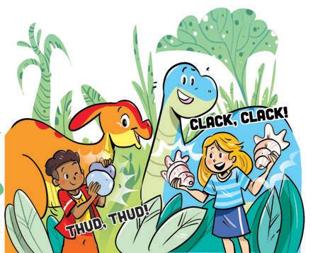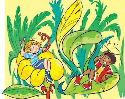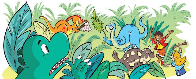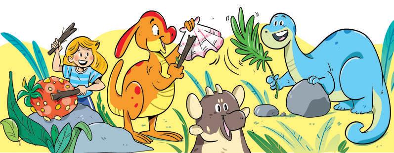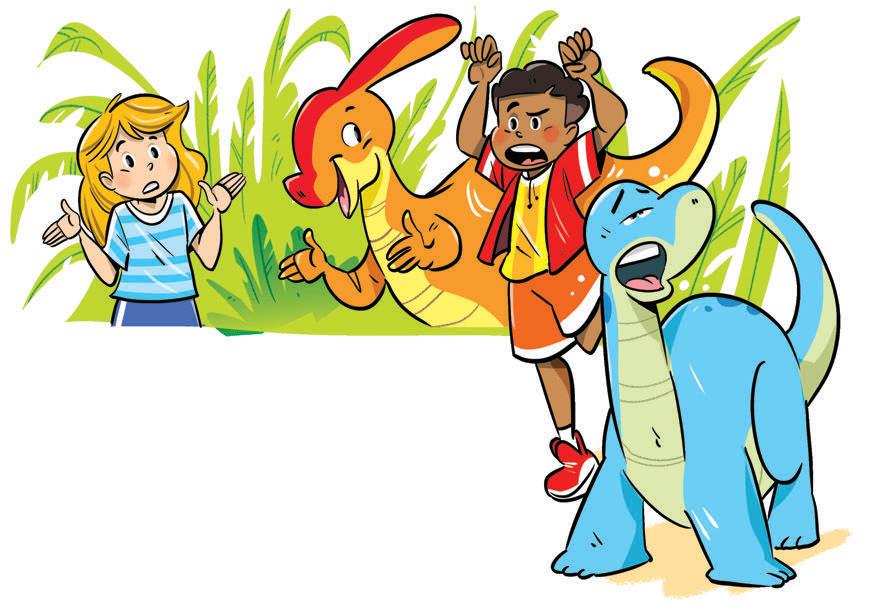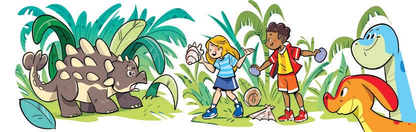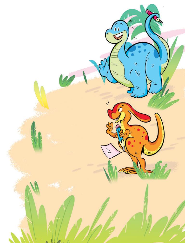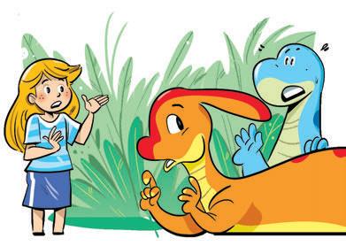 9 All’improvviso, ecco uno pterodattilo che fa cadere una foglia. È un messaggio! Pensa e rispondi alle domande.