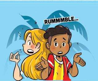 5 Scopri che tempo fa oggi nel giurassico. Ascolta il Jurassic Weather Forecast e disegna i simboli appropriati sotto a ogni luogo.