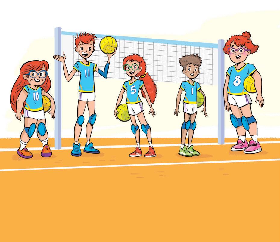 9 Guarda le giocatrici di pallavolo della squadra di Mia. Leggi e completa.