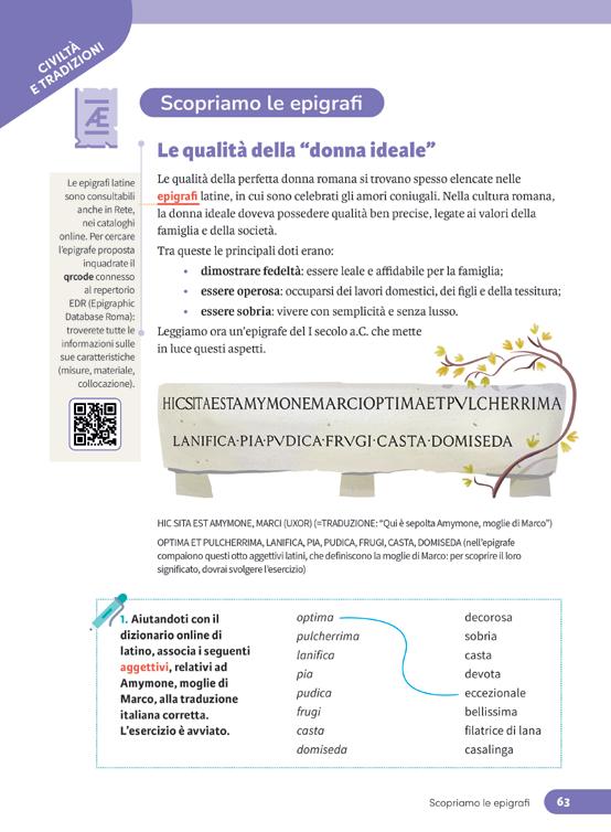Oltre alla dimensione linguistica, il corso propone un percorso di orientamento e crescita personale, identificato da appositi richiami alle competenze per la vita (Life skills). Gli studenti e le studentesse sono invitati a ritrovare sé stessi nelle emozioni e nei valori degli antichi – come la virtus, la pietas e l’amicitia – trasformando lo studio in una palestra di intelligenza emotiva che avvicina esperienze lontane alla propria sfera affettiva e valoriale.