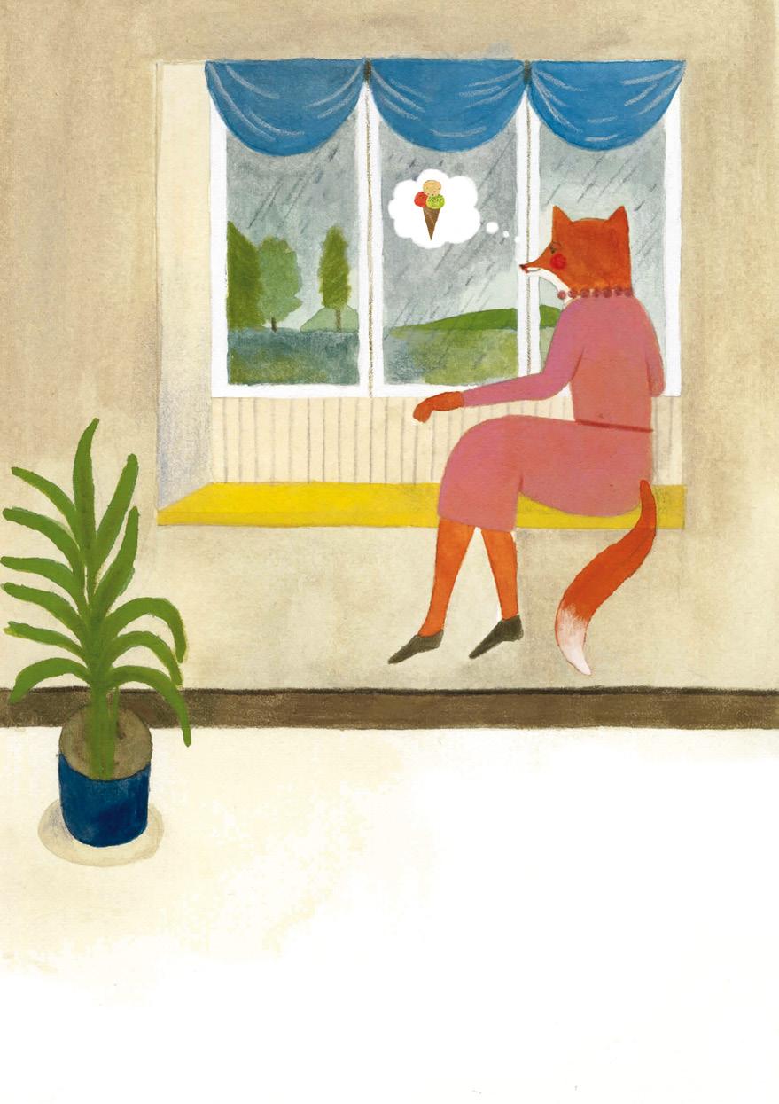 La mère de Bernard veut manger une glace, mais le marchand de glace est au milieu de la place et il pleut. Comment doit-elle faire ? Elle abandonne !