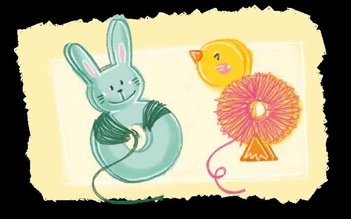 Sovrapponi le sagome e inizia a infilare un filo di lana facendo tanti giri, come vedi nel disegno qui accanto.