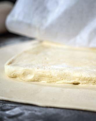 Rivestire l’interno di uno stampo, debitamente imburrato e infarinato, con una pasta (sfoglia, frolla e brisée).