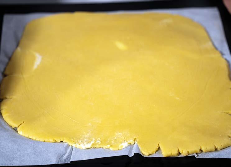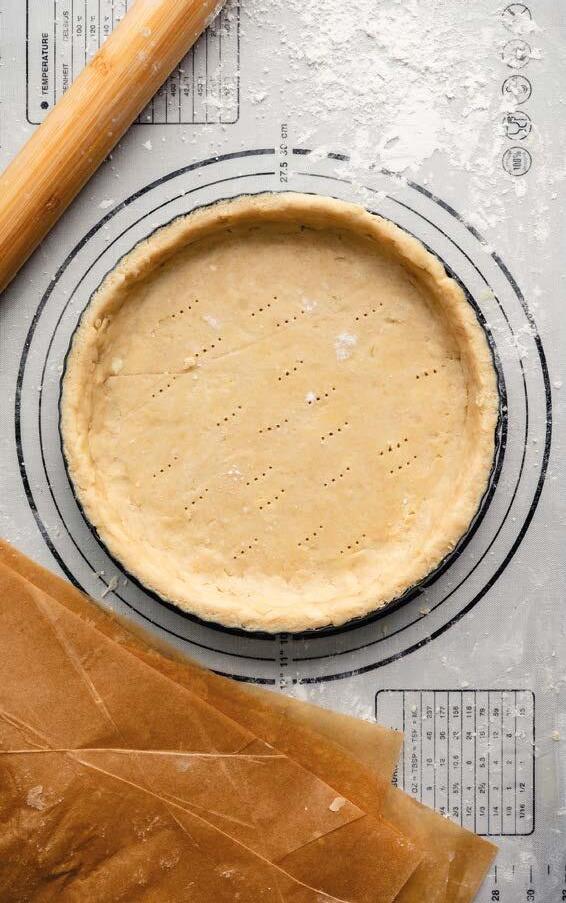 2 Foderare due tortiere di 20 cm di diametro, tenendo il bordo alto 1,5 cm (in modo che, versato il composto all’interno, non fuoriesca dal bordo di pasta frolla).