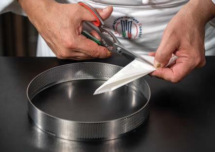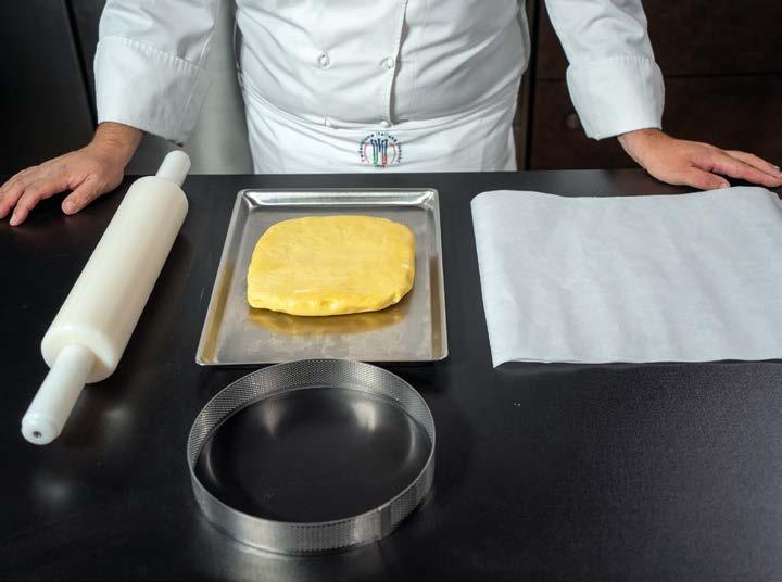 1 Stendere la frolla a circa 1 cm di spessore. Tagliare 2 dischi corrispondenti alla base dello stampo (del diametro di 18 cm) e, aiutandosi con il matterello, adagiare la pasta all’interno degli stampi.