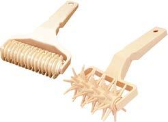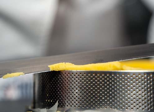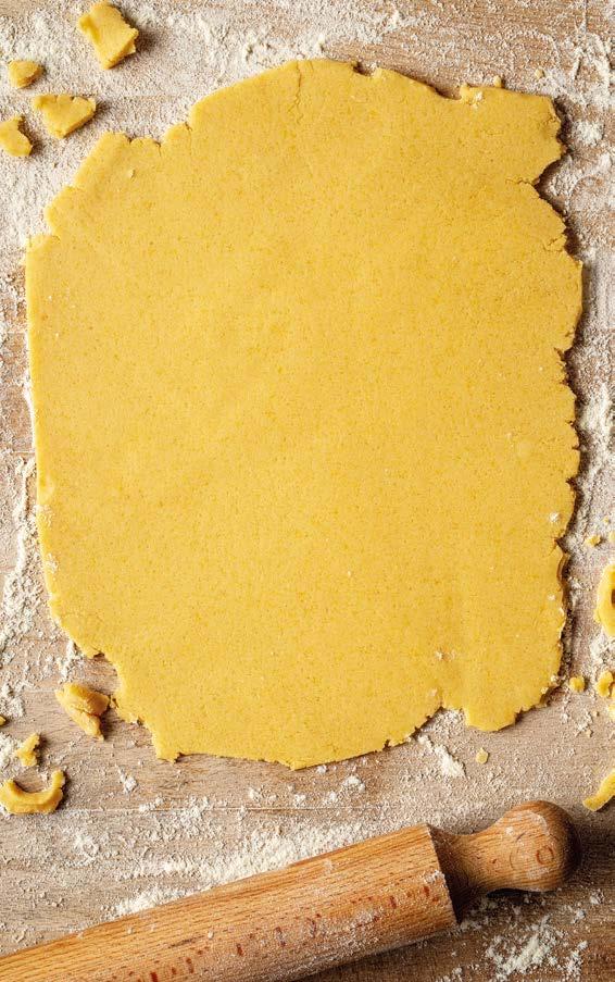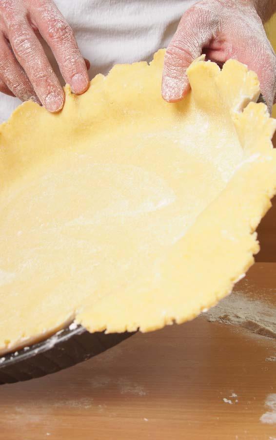 2 Con altra pasta formare un “cordone” della dimensione di un dito. Adagiare il cordone negli stampi contornando il bordo. Premere bene e decorare a piacere con una forchetta. Usare 2 teglie da 20 cm di diametro per ottenere 6 fette per stampo e facilitare il servizio.