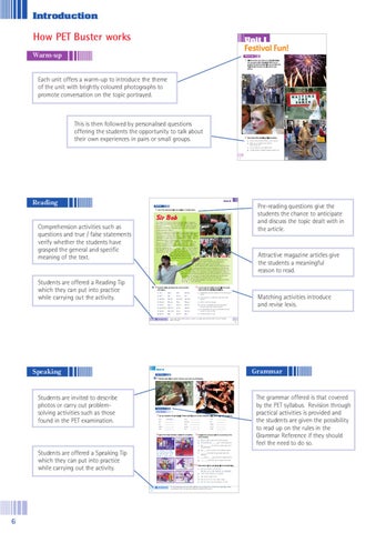 Each unit offers a warm-up to introduce the theme of the unit with brightly coloured photographs to promote conversation on the topic portrayed.