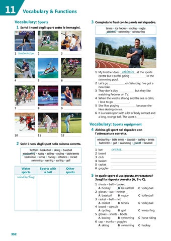 11 Vocabulary & Functions Vocabulary: Sports 1 Scrivi i nomi degli sport sotto le immagini.