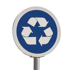 4 This sign uses a symbol to say that you can recycle plastics, glass, or paper.