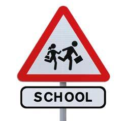 2 This sign uses a word and a picture to tell people a school is near. They must drive carefully.
