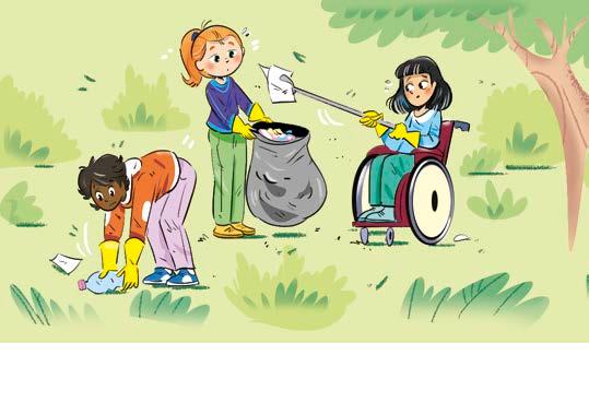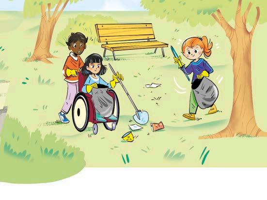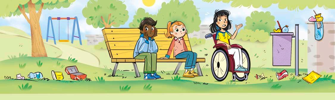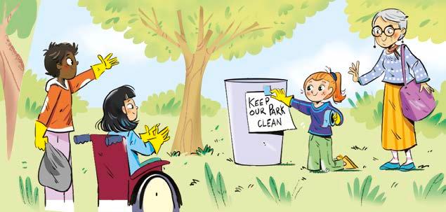 The park was full of garbage. “Why doesn’t anyone clean it up?” Rowan asked. “The city cleaners work very hard to clean the park,” said Julia. “But many people throw their garbage on the ground and not in the garbage bins.”
