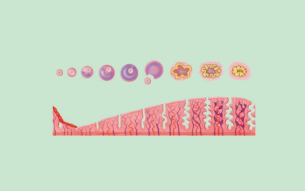 c. Se la cellula uovo non è stata fecondata il corpo luteo regredisce, la si stacca dalla parete dell’utero e i che la irroravano si rompono. Tutto il materiale viene espulso dalla vagina con la