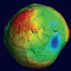 Our globe, however, is not even a perfect oblate spheroid, because mass is distributed unevenly within the planet. The greater a concentration of mass is, the stronger its gravitational pull, creating bumps around the globe.