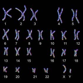 Nelle cellule somatiche, cioè quelle che formano i tessuti dell’organismo, il cariotipo è formato da 46 cromosomi organizzati in 23 coppie di cromosomi omologhi.