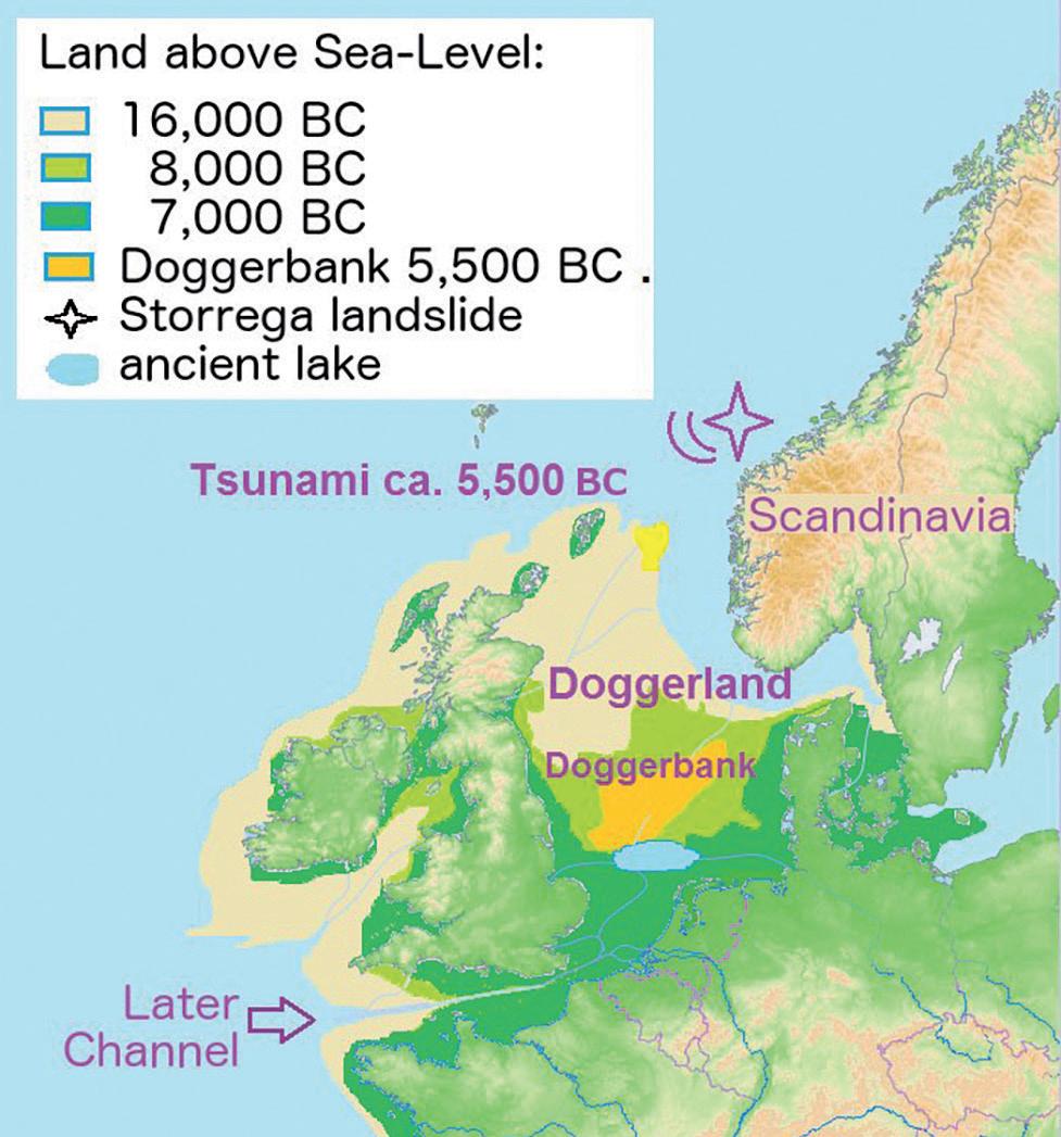 Until the last Ice Age Britain was part of the European (1)________________ mass. It was in fact joined to Europe by a vast land (2)________________ called Doggerland. The area was inhabited by typical (3)________________ species, but also by several Mesolithic populations who lived on hunting and (4)________________. Then, around 8200 BC, the (5)________________ level rose following the melting of the glaciers in the last Ice Age. A huge submarine landslide off the coast of Norway created an enormous tsunami, (6)________________ inundated Doggerland, and Britain was definitively cut off from (7)________________. Most Doggerlanders were swept away by the flood, but those who (8)________________ (known as Ancient Britons) were forced onto the (9)________________ in what is today’s England. Evidence of Doggerlanders’ presence is embedded in the seafloor, where modern fishermen often find ancient (10)________________ and tools.