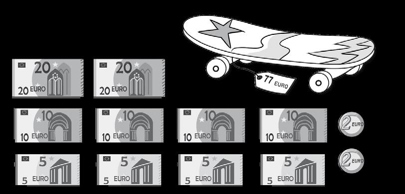 5 Questo skateboard costa 77 euro. Cerchia i soldi che servono per acquistarlo. Poi rispondi.