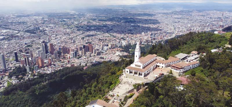 Bogotá verde Gracias a los parques y los cerros de la ciudad, el verde de la naturaleza está casi por todas partes. El más grande es el parque metropolitano de Simón Bolívar, en pleno centro urbano, considerado el pulmón de Bogotá por toda la vegetación que allí se encuentra. En una de sus áreas recreativas existe una réplica* del London Eye, la famosa noria* londinense, que nos ofrece una visión panorámica desde el centro de la ciudad. Pero si quieres disfrutar de unas vistas desde lo más alto, entonces, el Cerro de Montserrat es lo tuyo*. En este cerro se localiza un santuario al que podrás llegar a pie o en teleférico, y en él hay un mirador que está a unos 3100 metros de altitud. Desde ahí