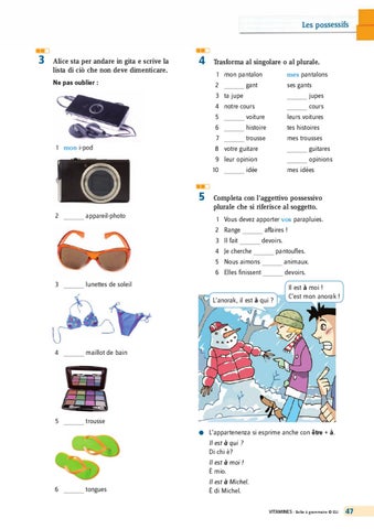 3 ________ lunettes de soleil L’anorak, il est à qui ?
