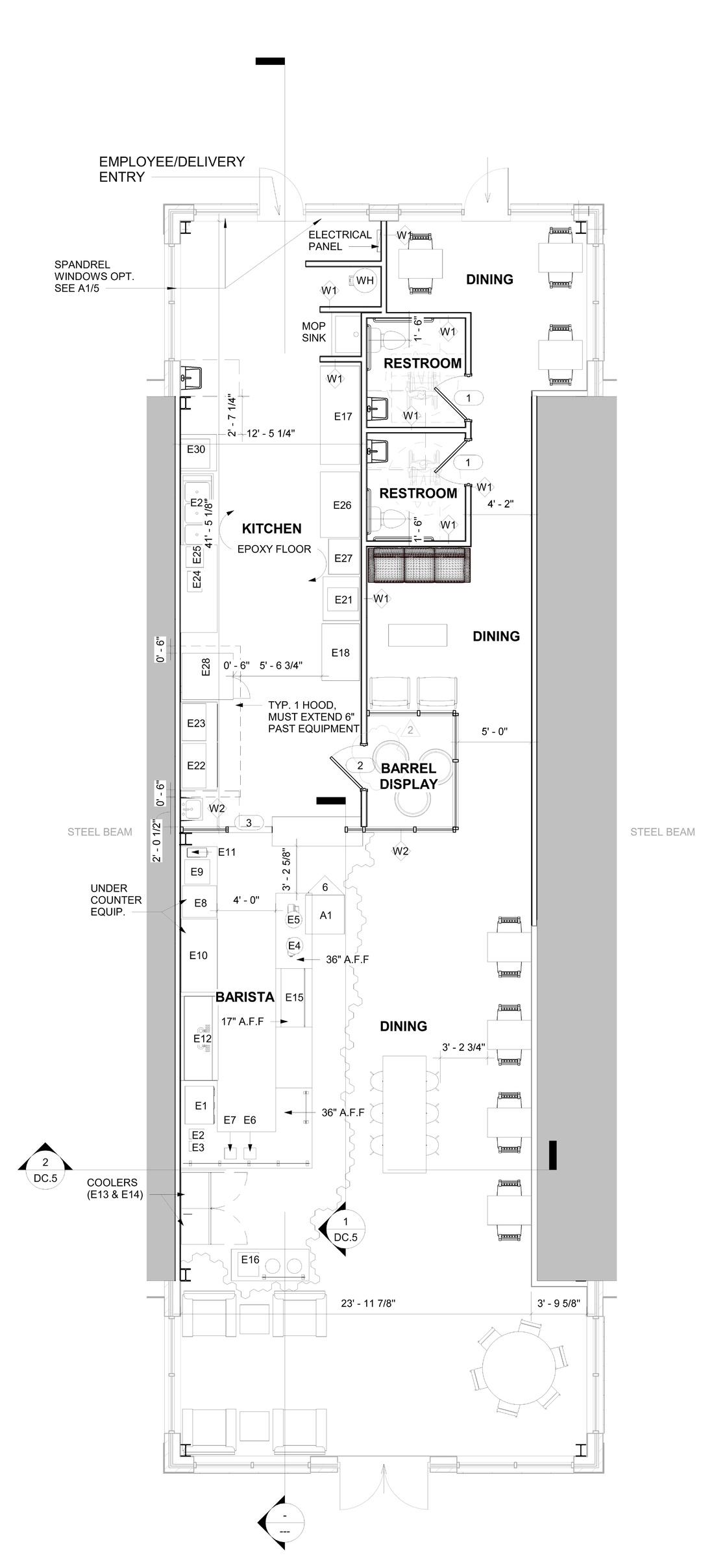 A-2: Cafe Seating: 1,580 SF/15 net = 106