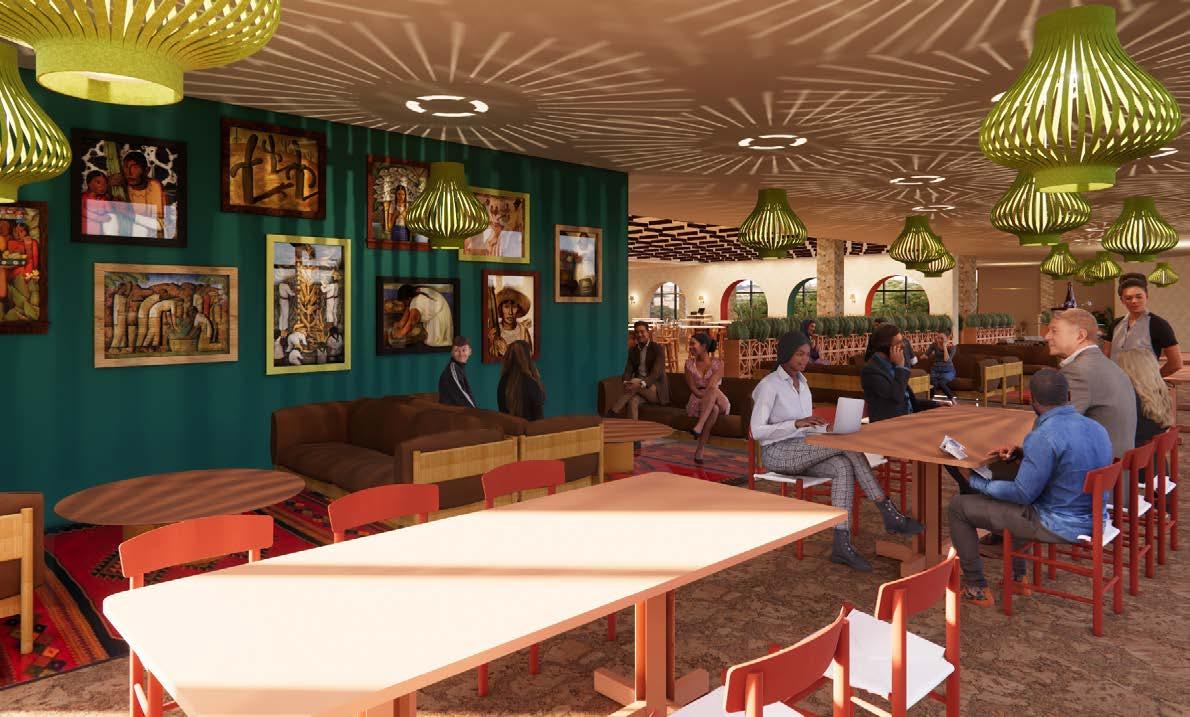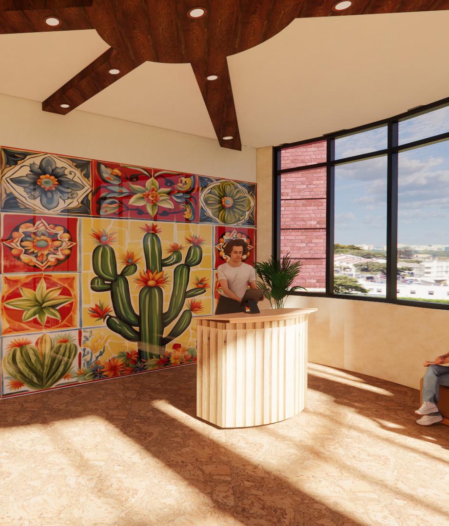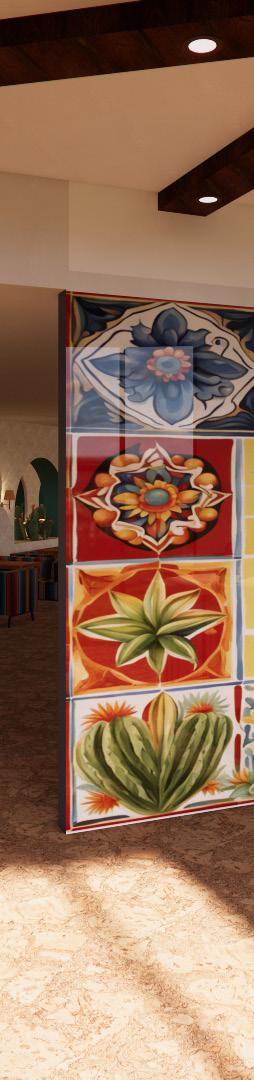 Choosing materials based off of cultural inspired aspects such as mexican tile, mexican artwork, warm wood tones, and traditonal bright colors, El Nopal blends native handicrafts with a contemporary twist. The design highlights the use of light, scale, vibrant colors, and rich textures, paired with carefully chosen furnishings, all of which celebrate the distinctive elements of modern Mexican architecture. RENDERED