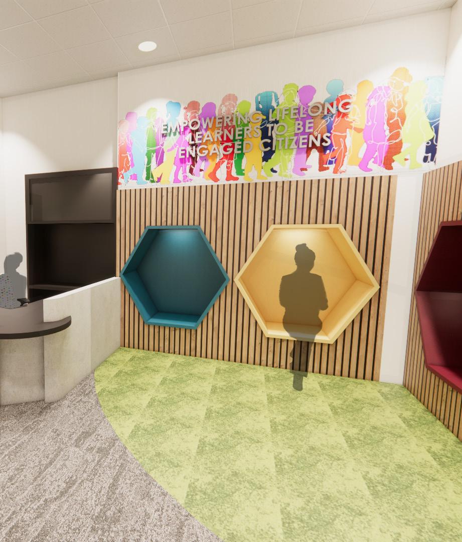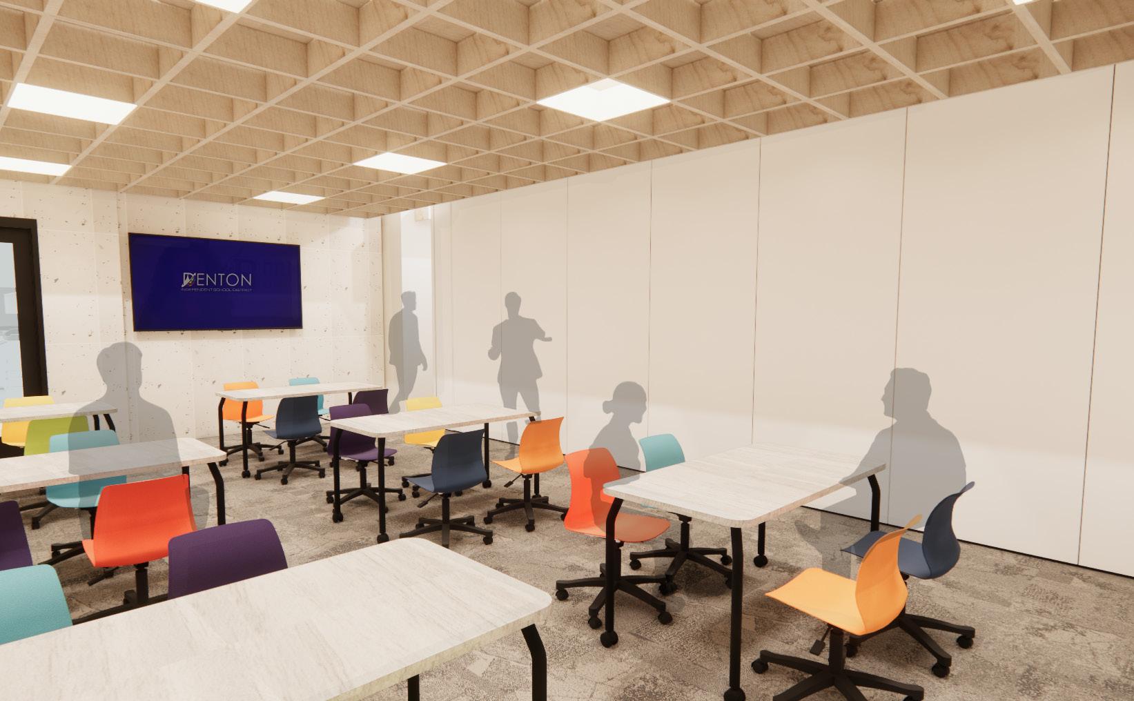 The new Denton ISD Student Services Center will serve as a playful and welcoming space that allows for collaboration and innovation. With a flexible layout that includes lounge areas, work pods, and ergonomic furniture this space will give users the choice between collaboration and focus. By incorporating natural elements and vibrant colors, a soothing and inviting atmosphere will be created to allow end users higher levels of comfortability and a boost in personal wellness.