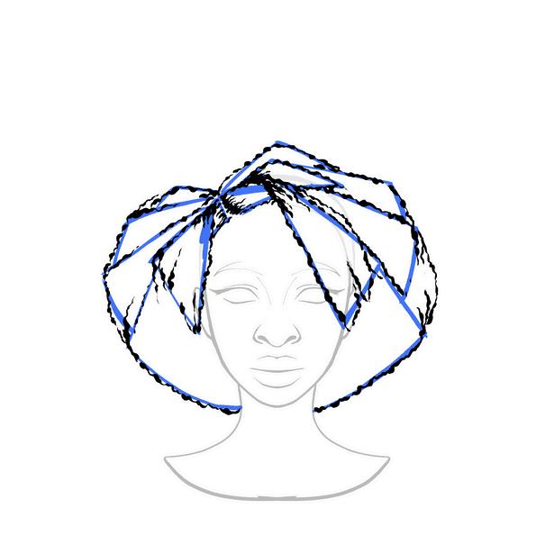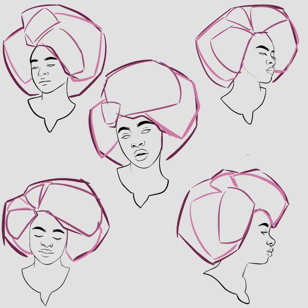 When observing reference notice how depending on the style, texture and the way the hair is manipulated textured hair can take on many different shapes
