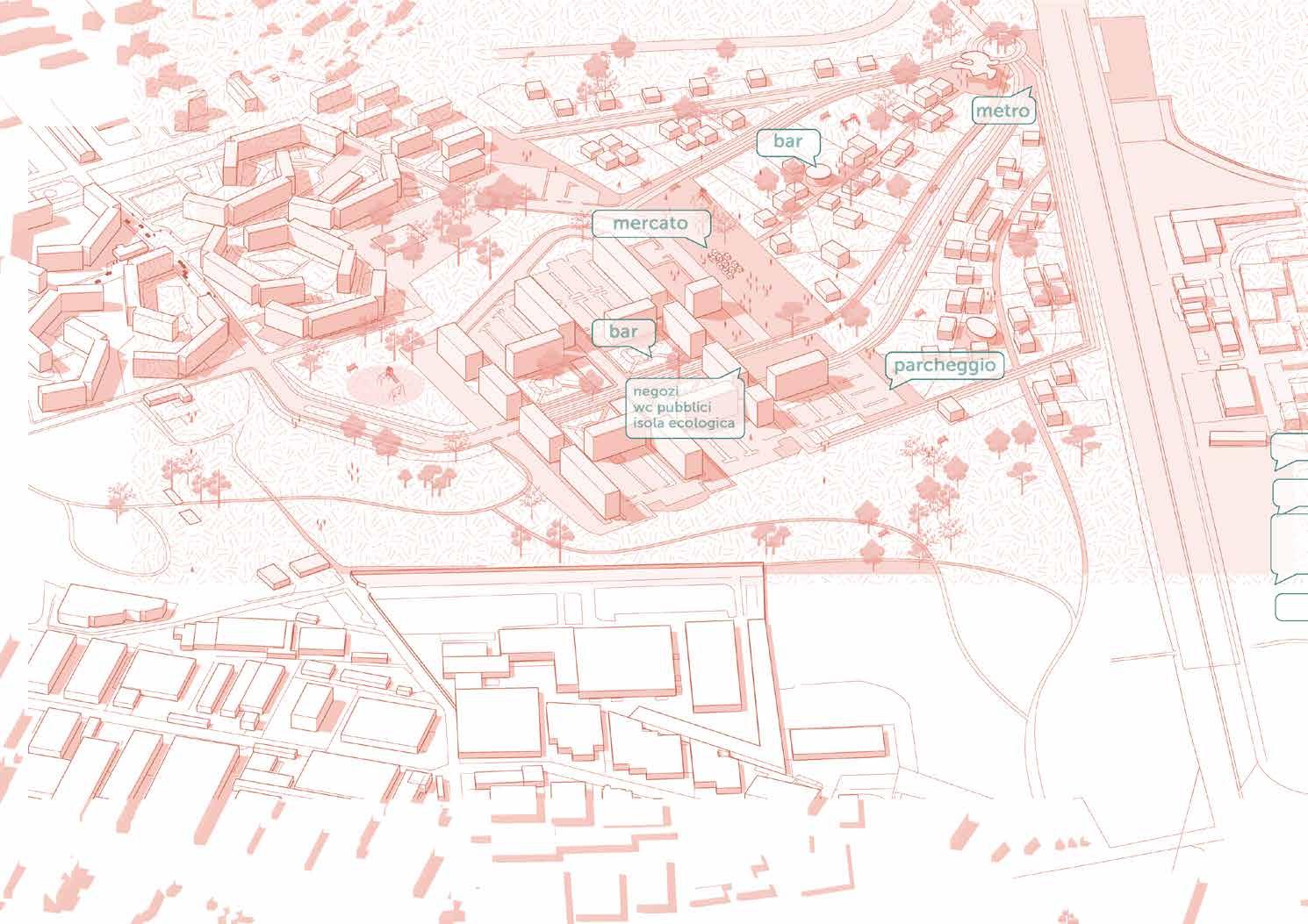 NUOVA PIAZZA DI QUARTIERE rigenerazione dell’area a sud del complesso residenziale e sua trasformazione in piazza di quartiere