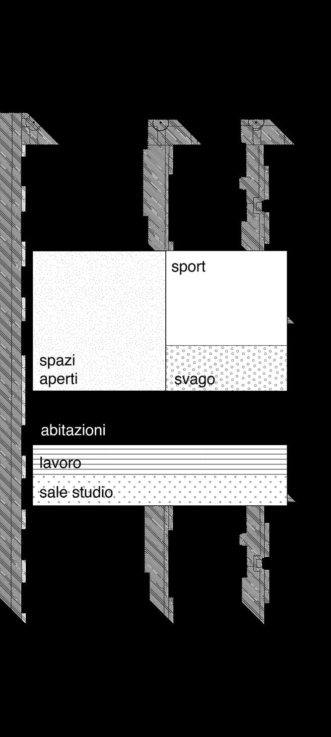 rethink the vertical distribution the first move consists in subtracting a precise number of stairwells, deemed superfluous for the purposes of the project