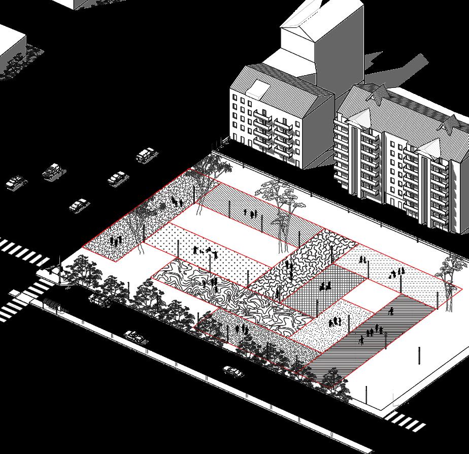 Tatami is a traditional Japanese flooring made up of modular rectangular panels, built with a wooden frame or other materials covered with woven and pressed straw. The reference to this oriental surface inspires a new way of organizing spaces on the ground, more precisely the floors. Through the use of different materials and a new ground design, there is a desire to redefine the uses of generally abandoned spaces.