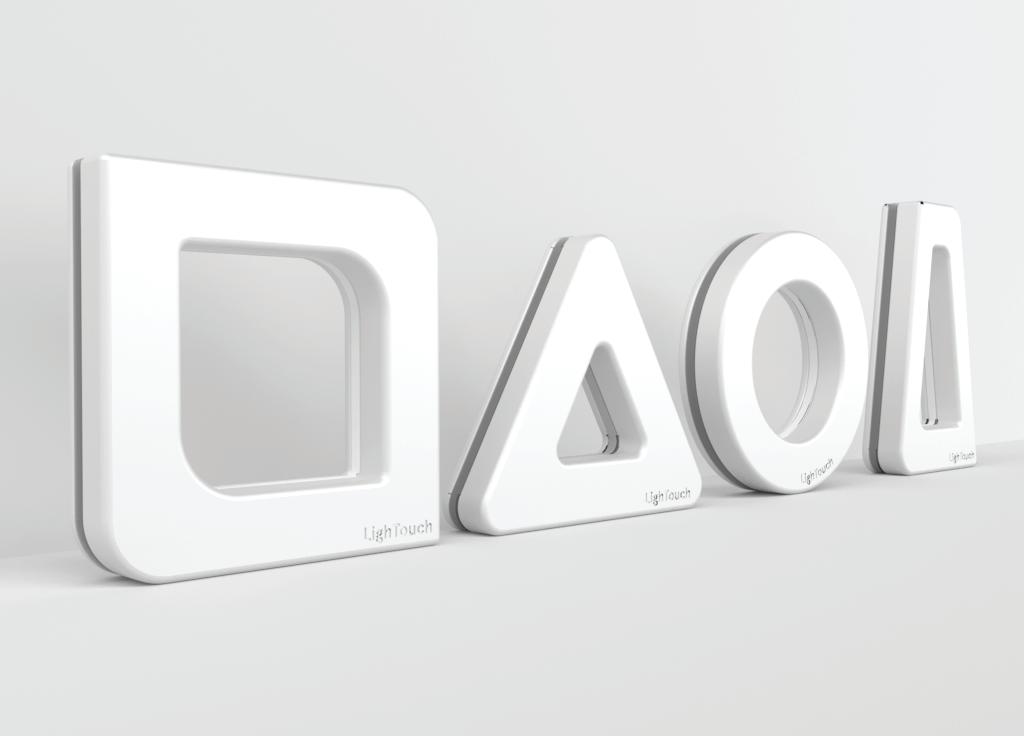 Prototipo aperto nelle sue 3 parti principali: scocca frontale; elemento per luce LED per fascia interna ed esterna; scocca posteriore per componenti interni e sensore adesivo esterno.