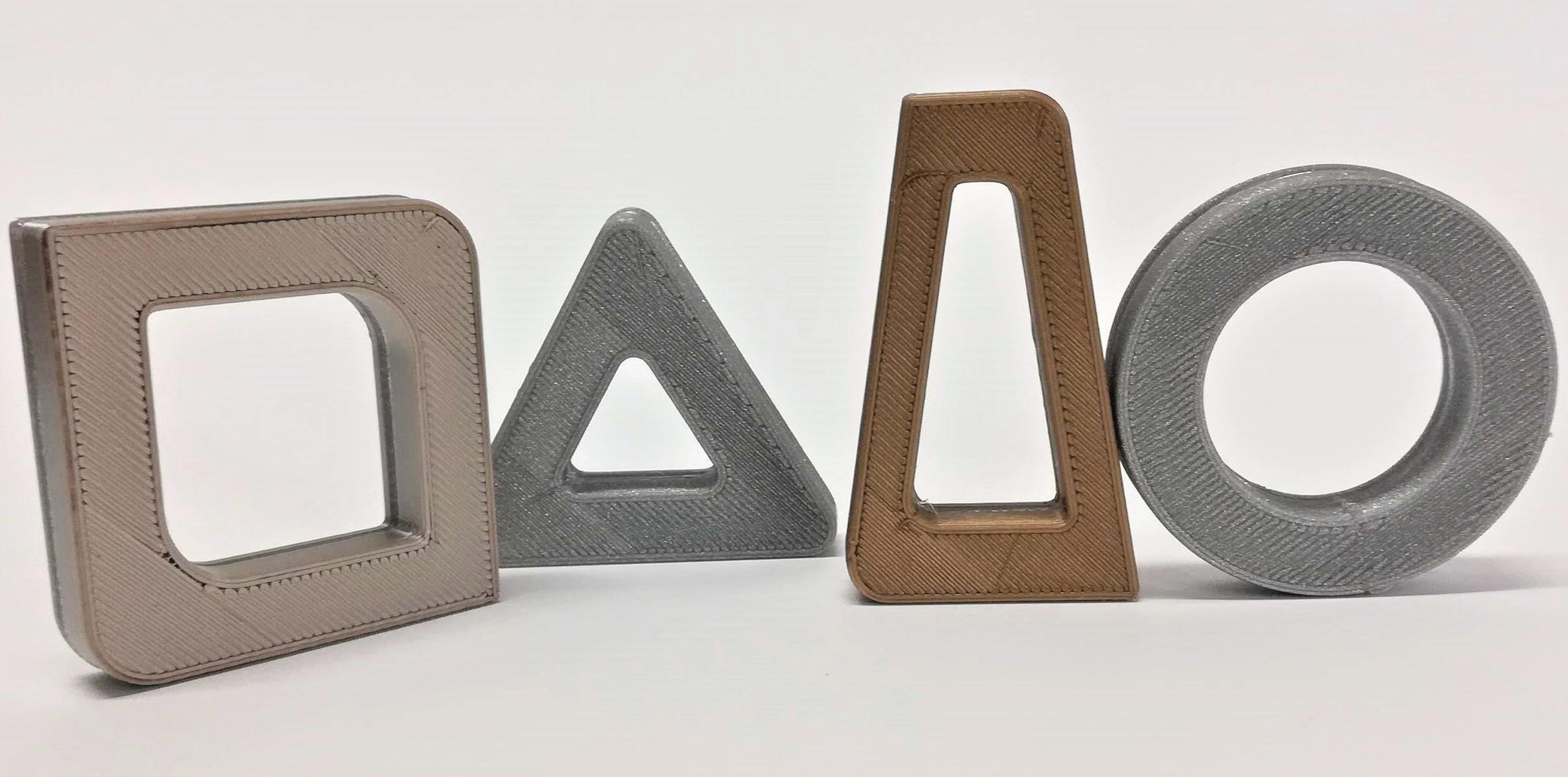 Da sinistra: filo bianco (PLA) e filo resa metallica (PLA) per rispecchiare il vetro temperato bianco e l’argento.