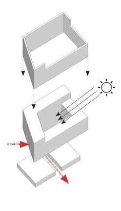 2. Ground floor gallery as public connection; offset residential volume to increase daylight exposure; double façade (which recalls the Milanese type of balcony houses) to protect the green terraces in between. Terraces not aligned create a vertical air flow allowing for natural ventilation of the entire building;