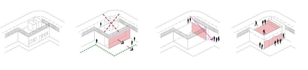 A line can mark a separation but also a link between two worlds. The project wants to highlight this possibility, and addresses the creation of a bridge between people, helping them to share ideas, visions, and ambitions, in a place that celebrates diversity and peculiarities. An inhabited “wall” made of small units that are located along the perimeter of the site, creating a point of contact between different realms that are physically separate, but became visually connected: the street, the canal, the roofscape become part of this new environment, a small citadel in the city, a series of individual units, all similar but at the same time all different.