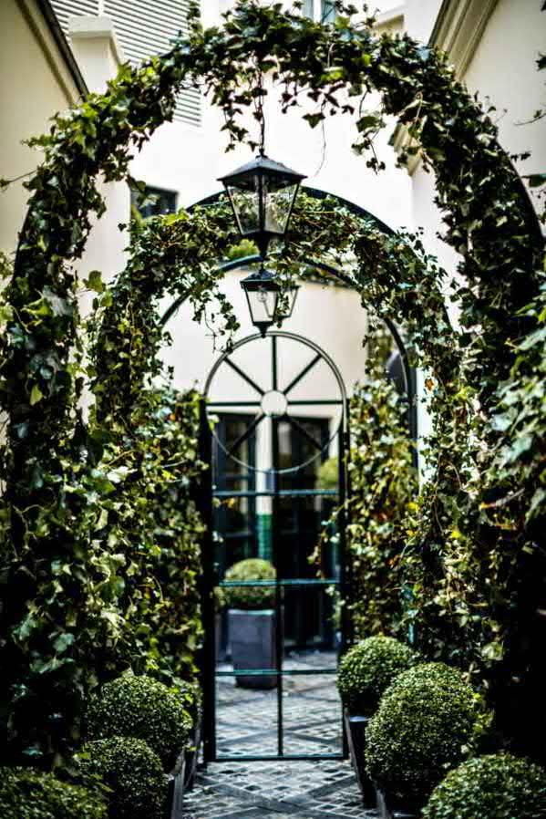 Abundance of greenery, green to black tones, reflections, mirrors, glass, black iron frames: the mood of the ground floor is immersed into a mysterious atmosphere, where the eye gets lost into the multitude of details and patterns.