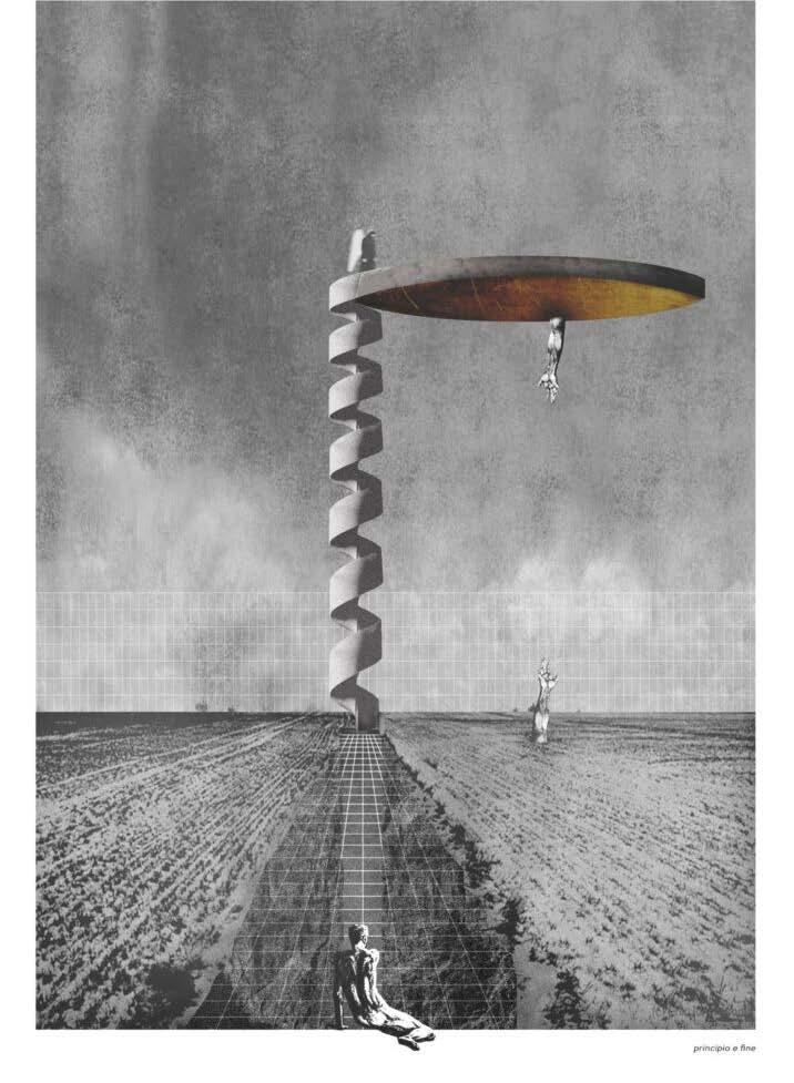 In 2017 Luca Molinari curated an exhibition that took place in Milan, at the SpazioFMG per l’Architettura, focused on the character of Dante Alighieri, with the desire of starting a reflection around the universe, literary and simbolic of its masterpiece, the Divine Comedy. Afterwards followed other exhibibitons in other italian cities, first Caserta and then Urbino. Architects were called to produce a visual interpretation of the novel and translate into architecture its evocative imagery, dense of suggestions, allegories, analogies and emotions. The submitted work, in collaboration with the architect Pietro Carlo Pellegrini, was a collage that somehow narrates the internal struggles of the character Dante, intended as the mankind in general, evoking a sense of instability and fear for the unknown, still a sense of hope and optimism in a tension between opposites.