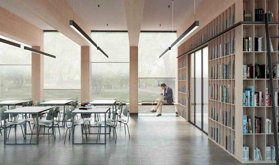 The new library’s shape recalls the traditional buildings that characterize Milan’s countryside, the “cascine lombarde”.