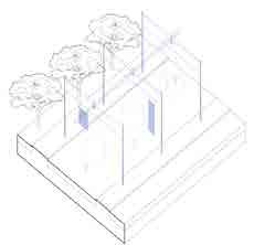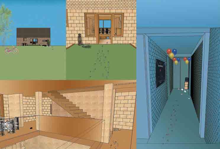 En réinterrogeant la forme de l’habitat notamment à travers un pattern et en s’appuyant sur les écrits de Christopher Alexander « A pattern Langage », la maison de l’artiste questionne l’habitat original. Un pattern est une solution générique à un questionnement ou à un problème. Tout en restant dans le cadre de l’habitat, j’ai développé mon pattern en trois espaces : le privé, l’intermédiaire et le social. La maison de l’artiste possède trois étages orchestrés par le pattern le sous-sol pour la partie privée, le rez-de-chaussée accueillant les pièces intermédiaires (privé et entrée du public) et à l’étage la partie publique notamment la salle de concert. Chaque étage possède également son pattern, guidé par sa tripartition.