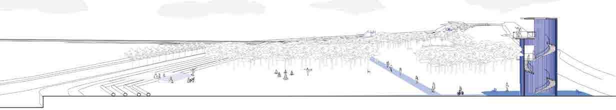 Le projet souhaite apporter aux habitants de la ville un nouveau moyen de mobilité rapide et efficace. Il est accessible à tous et amène un important flux tout au long de la journée. La forêt est gardée intact grâce à une plateforme de contemplation, donnant vue sur l’ensemble de la parcelle, jusqu’à la Seine.