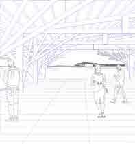 Cet espace commun se déploie au centre de la cité Descartes mais manque de visibilité depuis les rues passantes. Notre proposition est une structure métallique qui s’étend sur 223m. C’est une galerie qui distribue sept parcelles offrant des espaces verts aux usages diversifiés. En cheminant le long de la galerie, nous sommes invités prendre place autour des tables. Celles-ci sont parfois circulaires pour se réunir autour d’un foyer ou d’un bar commun, parfois se déployant sur un long linéaire offrant la possibilité de festoyer autour d’un grand banquet.Des barbecues collectifs invitent les étudiants cuisiner ensemble et permettent la réunion autour d’une activité commune. Plus loin, des assises, intimisées par la végétation, permettent à de plus petits groupes de se reposer.