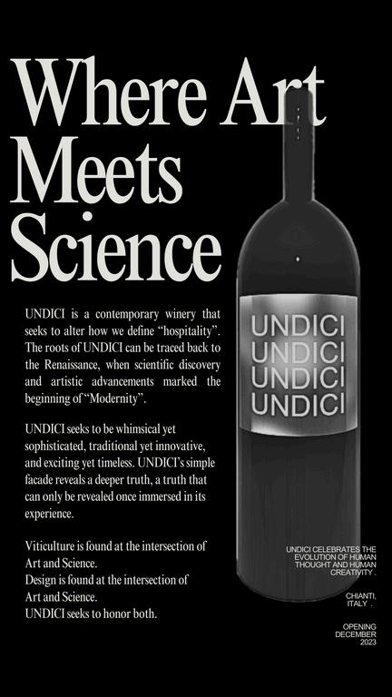 UNDICI is located in the Chianti region of Tuscany in Northern Italy. The estate sits on 20 acres of land with dynamic topography. The proposed building faces southwest, overlooking cascading vineyards and rolling hills in the distance.